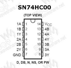 74HC00器件包含4路独立的2输入与非门。74HC00的逻辑功能表达式为:Y = /(A·B) 或 Y =