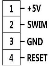 | 特点 | 1. 通过SWIM接口,可直接对相关型号进行测试、烧写 2. 晶振可更换 3. 以排针方式引出所有引脚,引脚间距为2.54mm(100mil) |