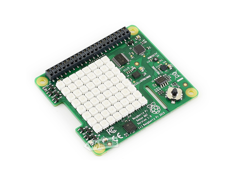我是树莓派原装传感器扩展板,集成了陀螺仪、加速度计、磁力计、气压计和温湿度传感器,还板载了8x8 RGB LED矩阵和五向摇杆等外设。