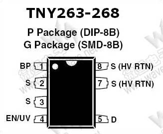 TNY268 概述The TNY268 integrates a 700 V power MOSFET, oscillator, high voltage switched current source, current limit and thermal shutdown circuitry onto a monolithic device. The start-up and operating power are derived directly from the voltage on the DRAIN pin, eliminating the need for a bias winding and associated circuitry. In addition, the TNY268 devices incorporate auto-restart, line undervoltage sense, and frequency jittering. An innovative design minimizes audio frequency components in the simple ON/OFF control scheme to practically eliminate audible noise with standard taped/varnished transformer construction. The fully integrated auto-restart circuit safely limits output power during fault conditions such as output short circuit or open loop, reducing component count and secondary feedback circuitry cost. An optional line sense resistor externally programs a line under-voltage threshold, which eliminates power down glitches caused by the slow discharge of input storage capacitors present in applications such as standby supplies. The operating frequency of 132 kHz is jittered to significantly reduce both the quasi-peak and average EMI, minimizing filtering cost. |