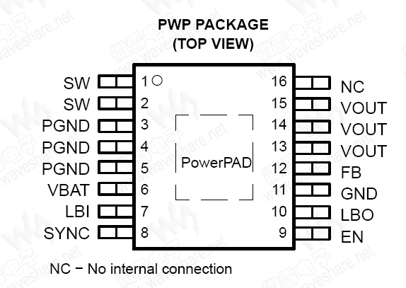 TPS61032 概述The TPS61032 devices provide a power supply solution for products powered by either a one-cell Li-Ion or Li-polymer, or a two to three-cell alkaline, NiCd or NiMH battery. The TPS61032 generates a stable output voltage that is fixed internally on the chip. The TPS61032 provides high efficient power conversion and is capable of delivering output currents up to 1 A at 5 V at a supply voltage down to 1.8 V. The TPS61032 can be disabled to minimize battery drain. During shutdown, the load is completely disconnected from the battery. The TPS61032 is packaged in a 16-pin QFN package measuring 4 mm x 4 mm (RSA) or in a 16-pin TSSOP PowerPAD™ package (PWP). |