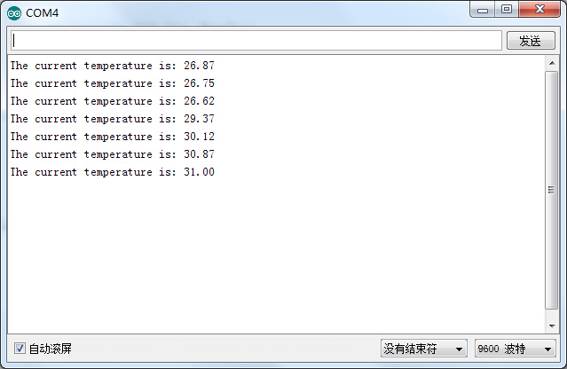 }下载程序后,打开串口监视器,会显示当前的温度信息。用手触摸LM75芯片,温度会发生变化,现象如下: 附件: |